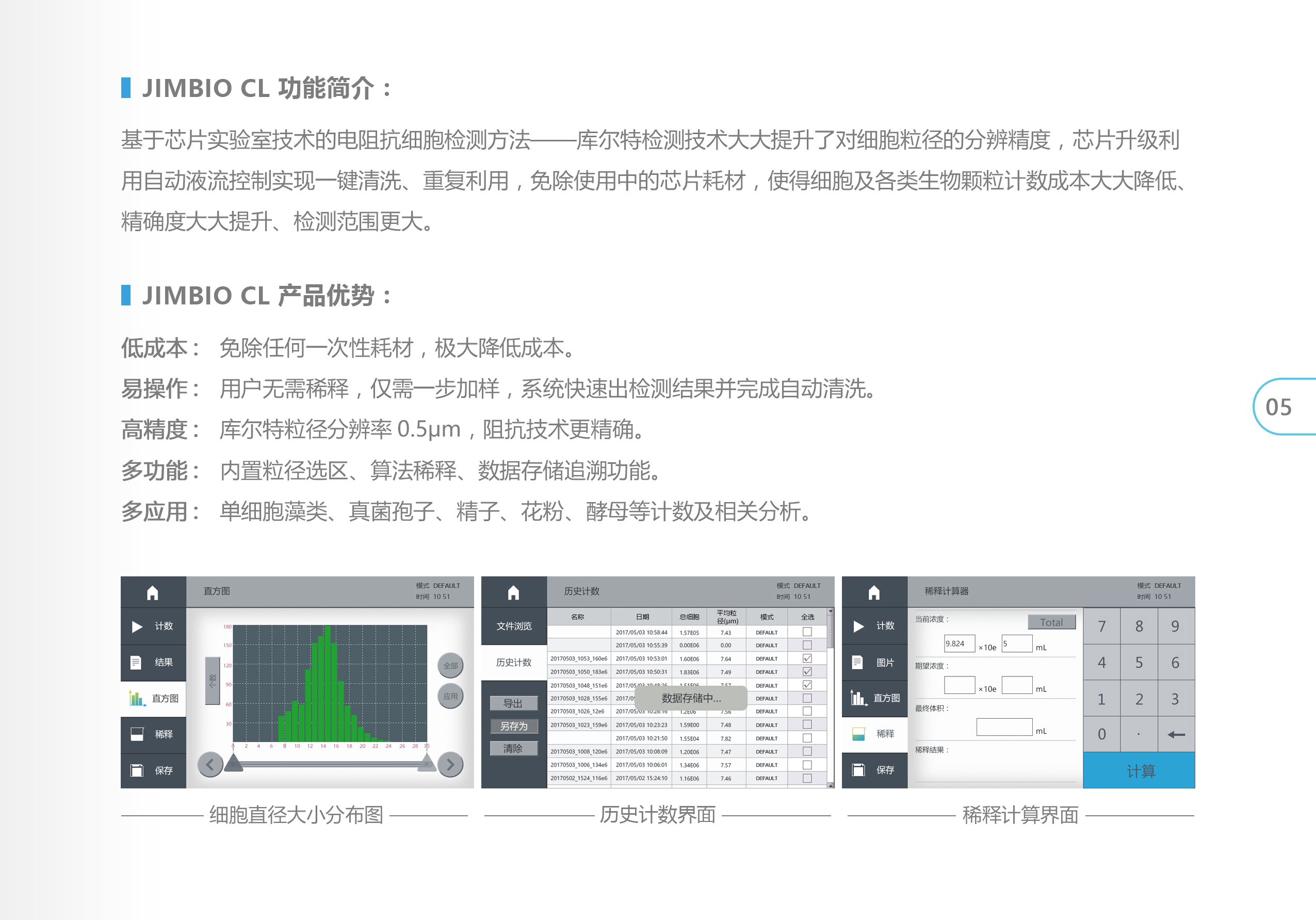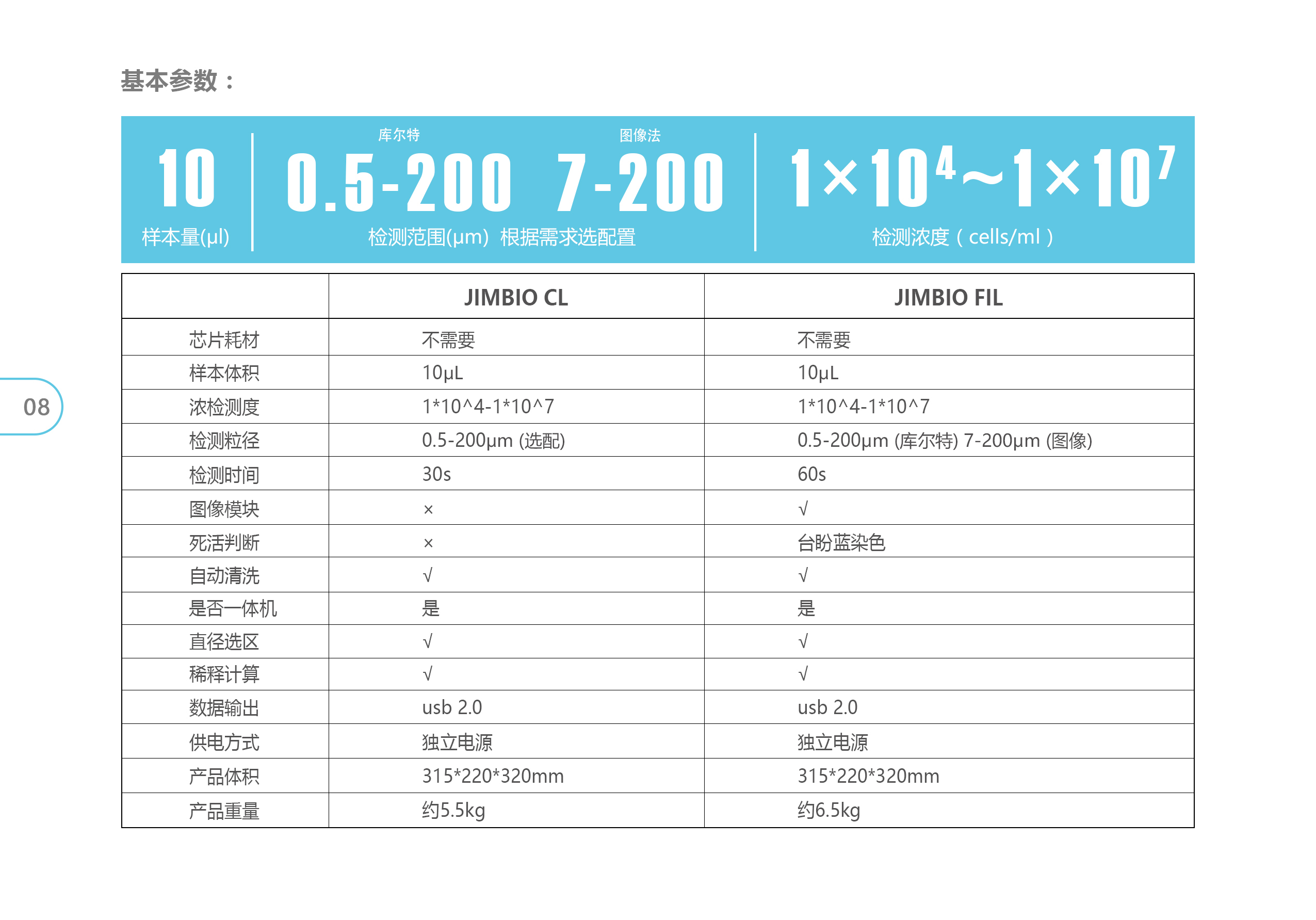 Jimbio CL采用流式庫爾特原理,庫爾特粒徑分辨率0.5μm,阻抗技術更精確;