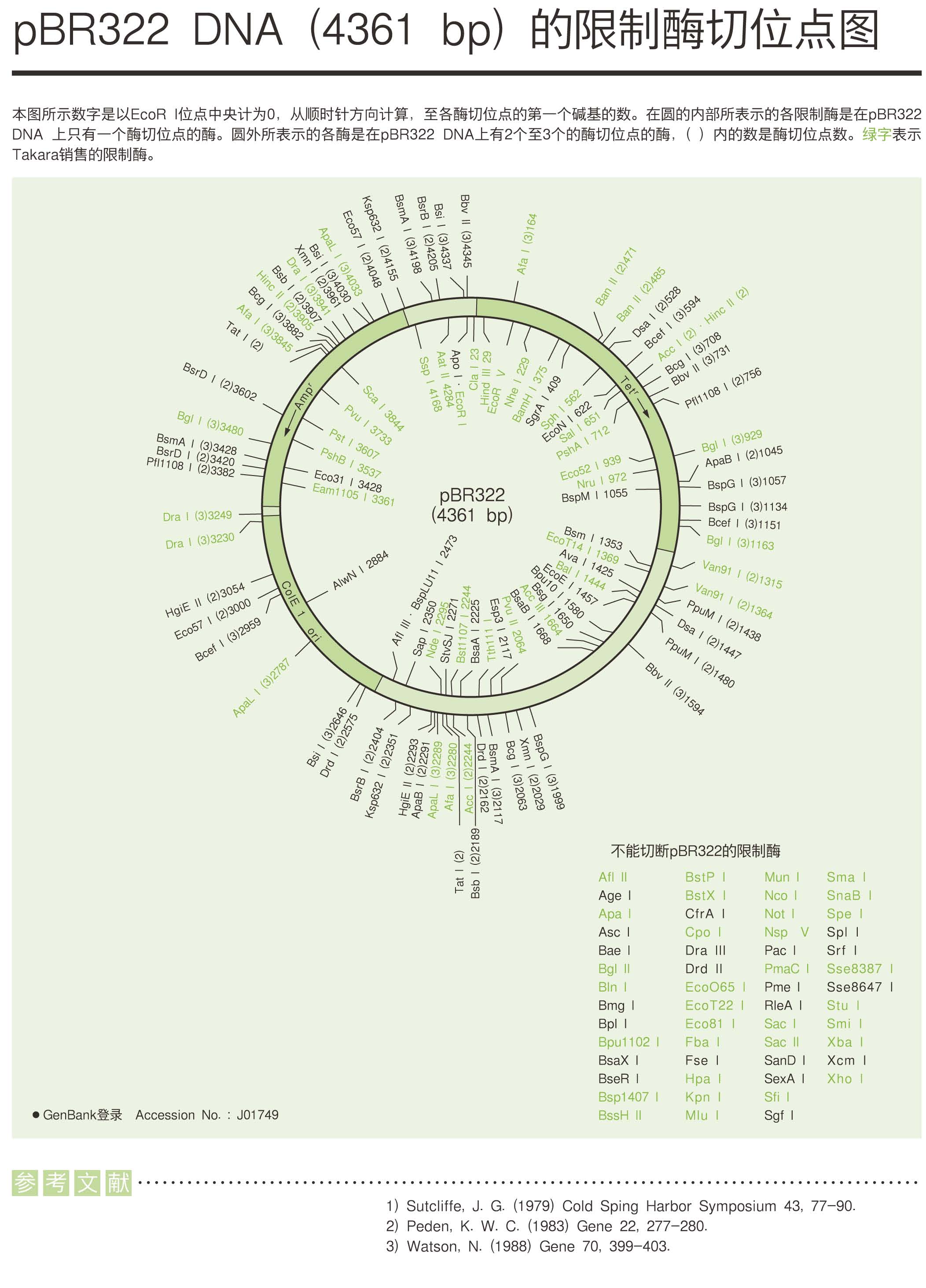 pBR322 DNA的限制酶切位點圖