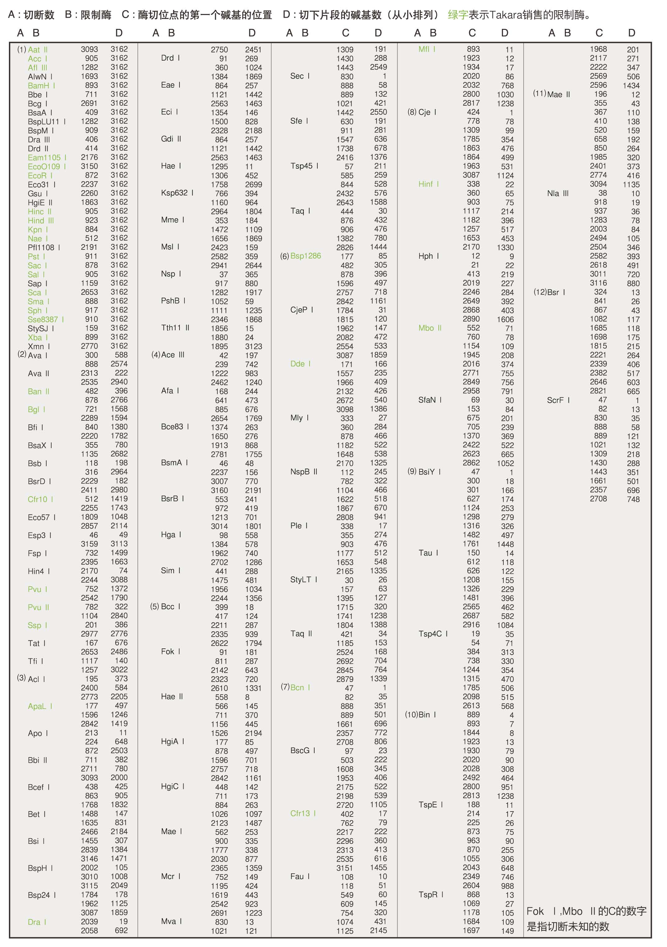 pUC119 DNA的限制酶切位點(diǎn)圖