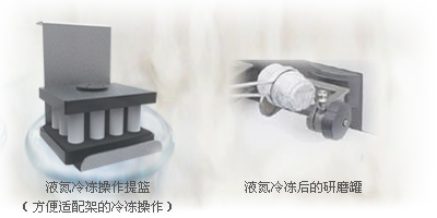 | 低溫研磨功能: | 適配器及研磨罐可浸入液氮 樣品溫度可達-192℃ | 適配器及研磨罐可浸入液氮樣品溫度可達-192℃ |