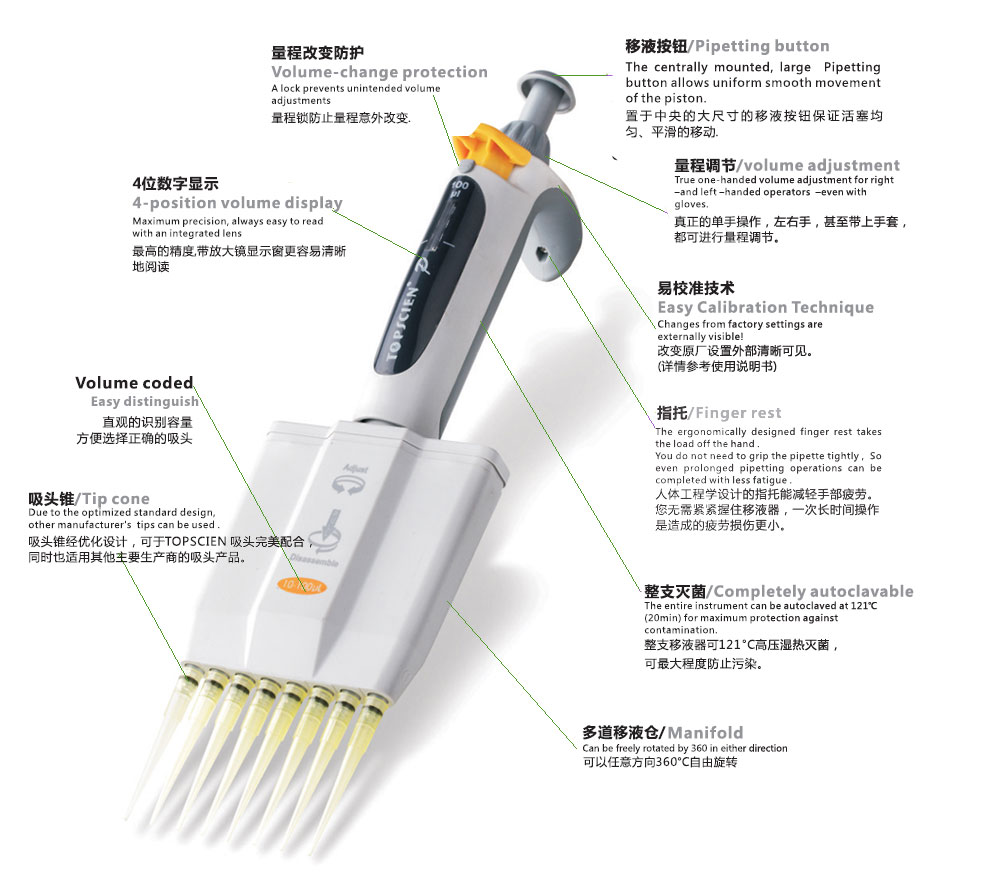 拓普森P系列8通道,12通道可調(diào)移液器,121℃整支消毒,一年質(zhì)保
