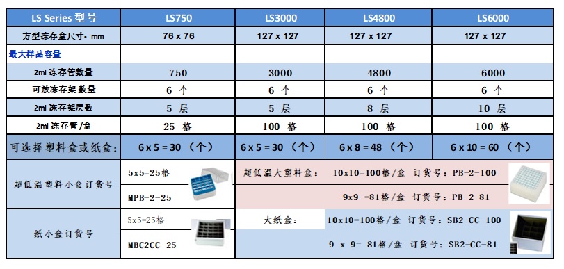 | LS-系列鋁罐 (容量35升至165升,放正方型凍存架) | ||||
