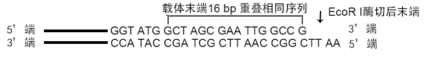 如果需要保留 EcoR I 酶切位點(diǎn),需要在載體末端16bp重疊序列和目的片段特異引物序列之間補(bǔ)齊缺失的EcoR I 識(shí)別位點(diǎn)序列aattc,完成克隆連接后,EcoR I 酶切位點(diǎn)依然存在(保留酶切位點(diǎn))。