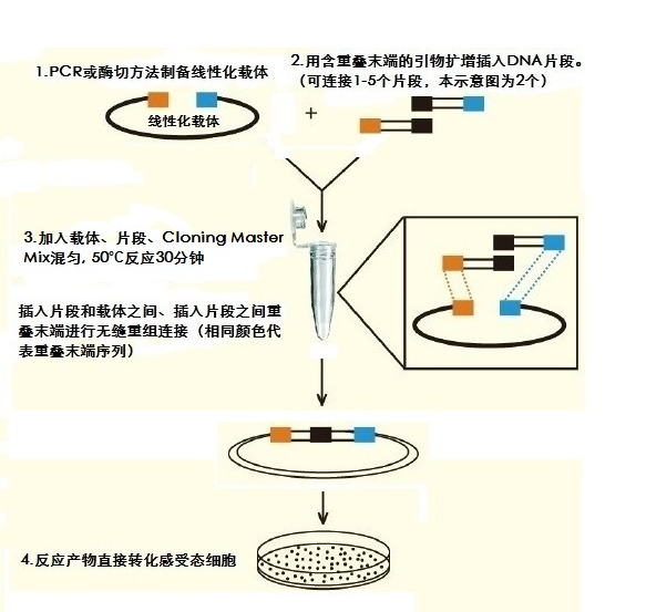 2. 可以同時重組克隆1-5個DNA片段到載體上。